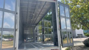 Thùng kín của xe tải Tera 345SL được thiết kế theo kiểu container, với cửa container mở theo chiều dọc giúp thuận tiện khi gửi và nhận hàng hóa. Hệ thống cửa container cũng giúp bảo vệ hàng hóa bên trong an toàn và chắc chắn trong quá trình vận chuyển.